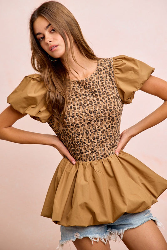 Front Tie Heart Embroidered Puff Sleeve Blouse