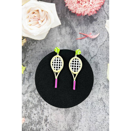 Wimbledon Tennis Racket Earrings – Acrylic Drop Post, 2.7" Statement Pair