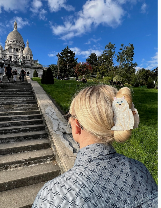 Pinza para el pelo con forma de garra de gato persa pintada a mano